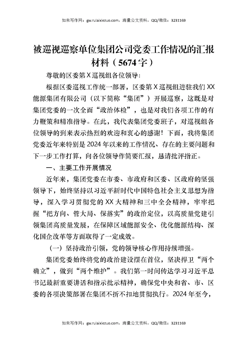 首页最新热门被巡视巡察单位国企党委工作情况的汇报材料